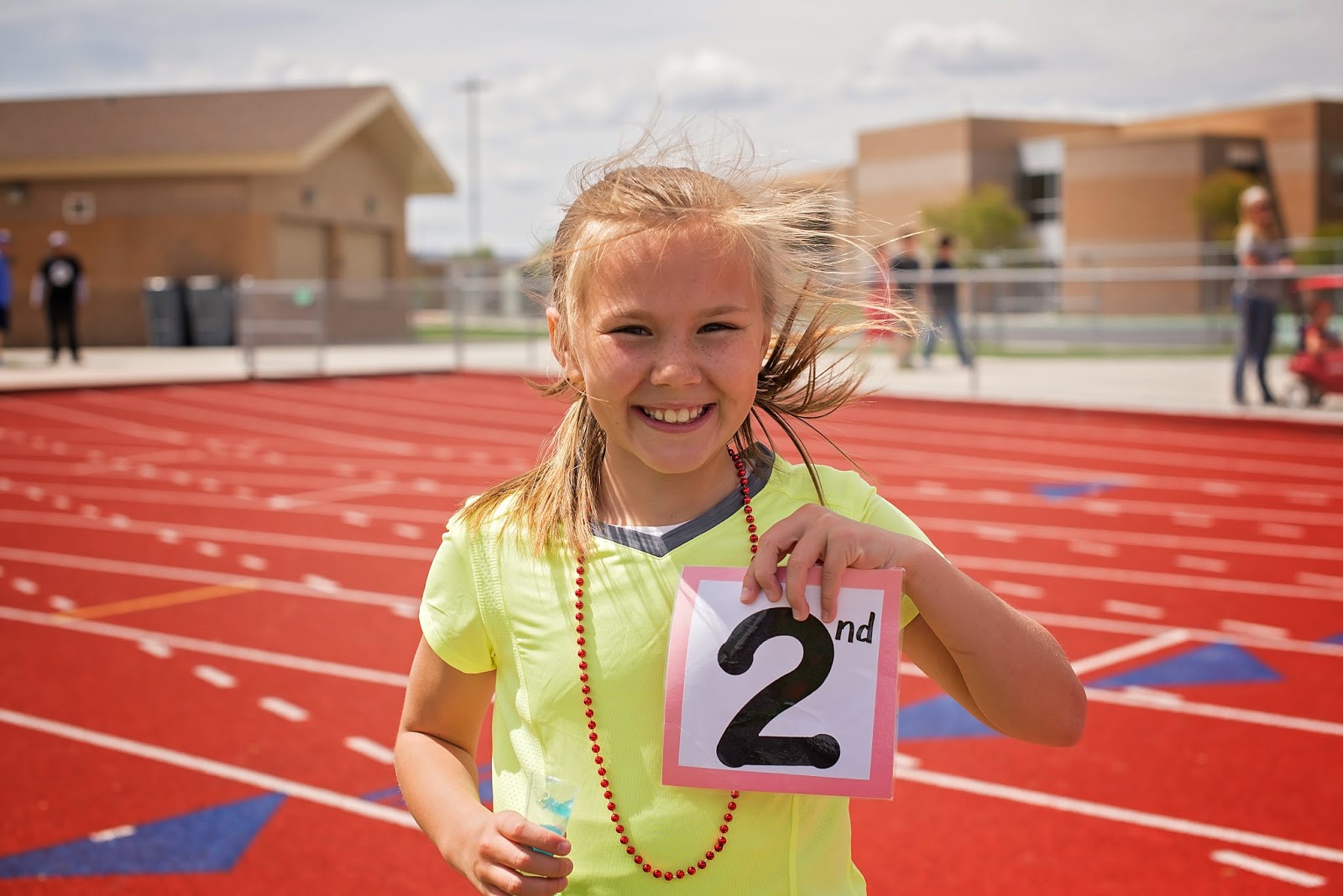 Here's Aubrey running the 400m The other girl in the picture is in 2nd place. She won 1st place running a 1:06.51